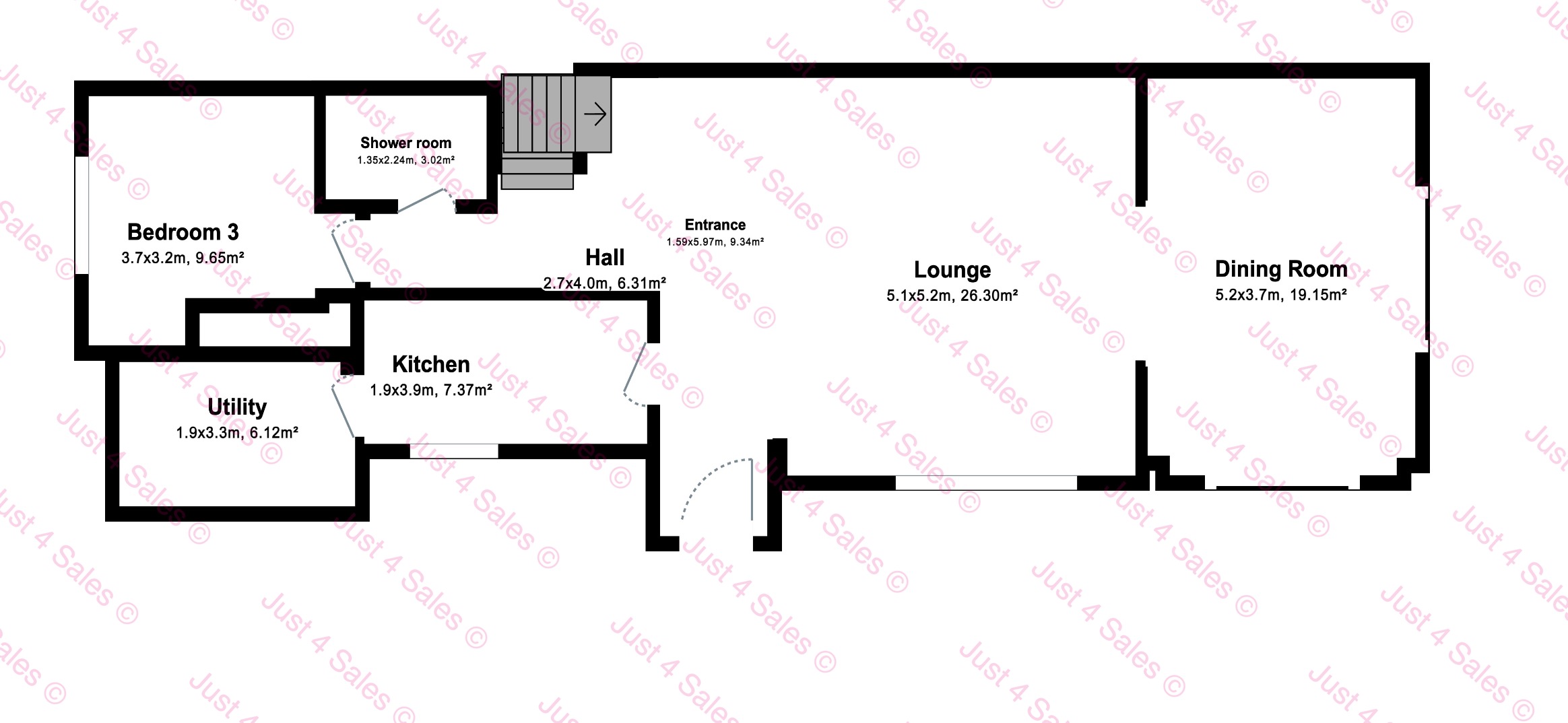 The property offers a spacious living room leading to a bright conservatory, an independent fully fitted kitchen with a separate utility room, plus a double bedroom and bathroom on the ground floor.