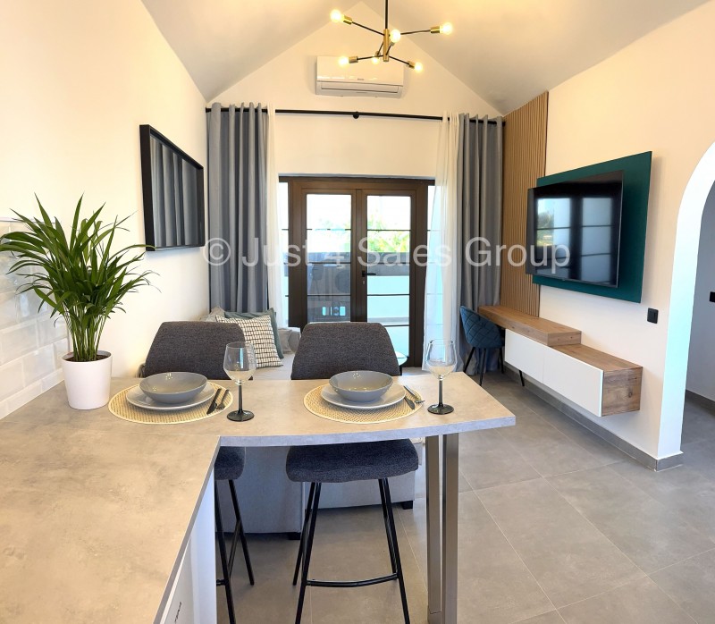The property has been fully refurbished to an exceptional standard, including completely new electrical wiring, a modern kitchen fitted with brand-new appliances, and a stylishly renovated bathroom. In addition, the bungalow benefits from brand-new air conditioning, ensuring comfort all year round.